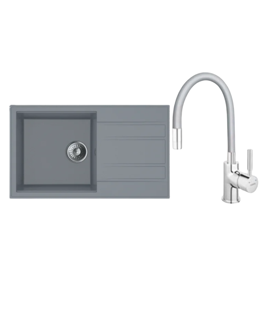 Sudoper Granitni MILO RETTO 78×46 Diamond grey+Baterija za sudoper Flexi siva AquaLux