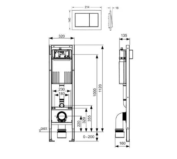 Zapremina spremnika 7 litara; tvornički podešeno ispiranje od 6 litara; 4,5 litre ispiranja podesivo u bilo kojem trenutku; 3 litre za djelomično ispiranje s dvostrukim sustavom ispiranja; opcionalno moguće podesiti ispiranje 4/2 litre. Preostala količina vode može se koristiti za trenutno čišćenje školjke.